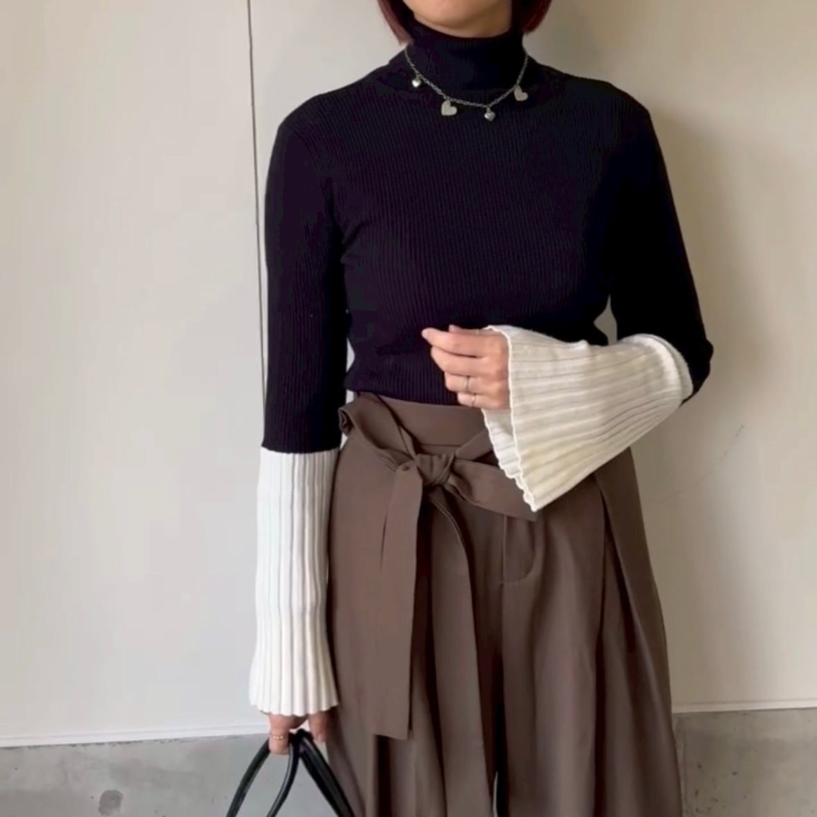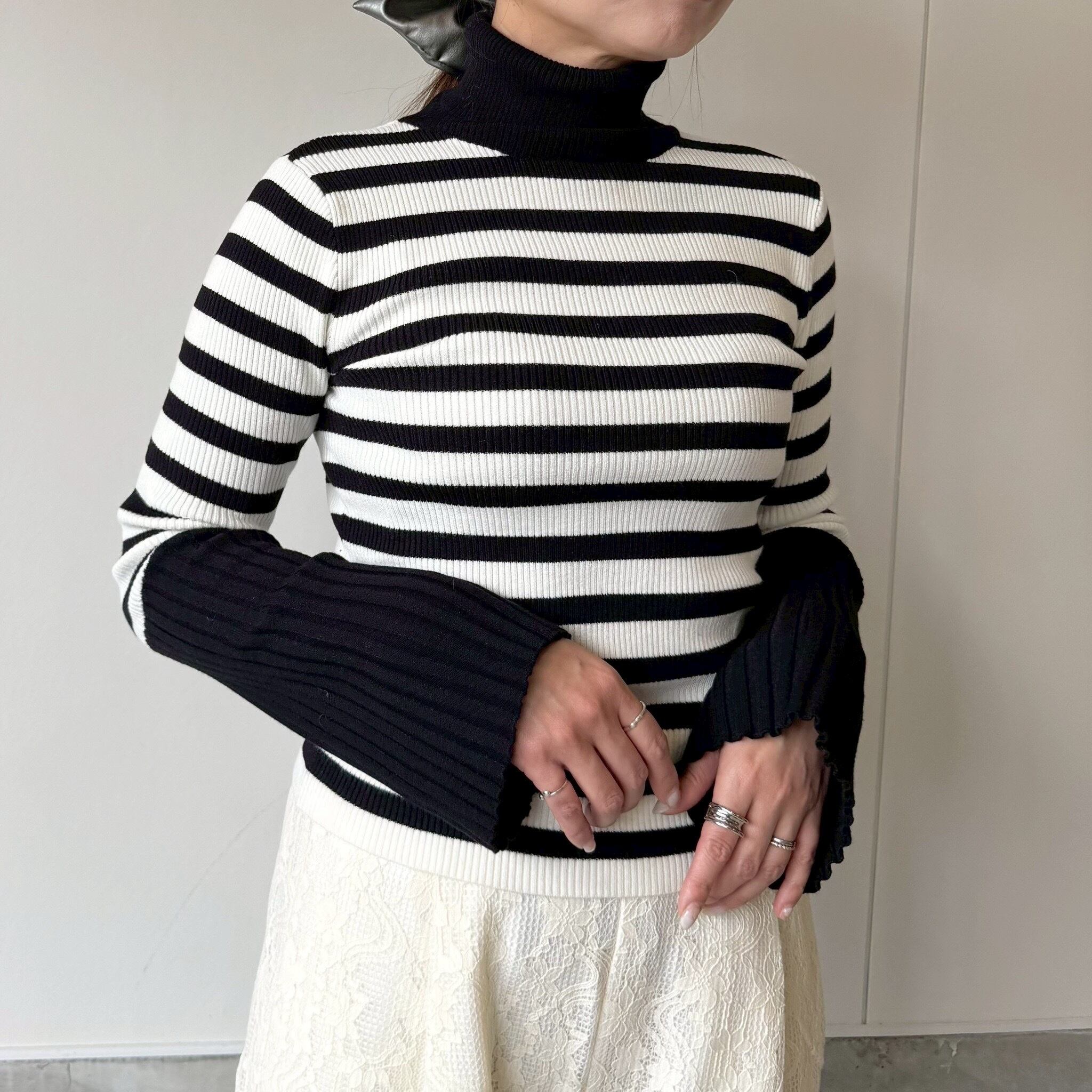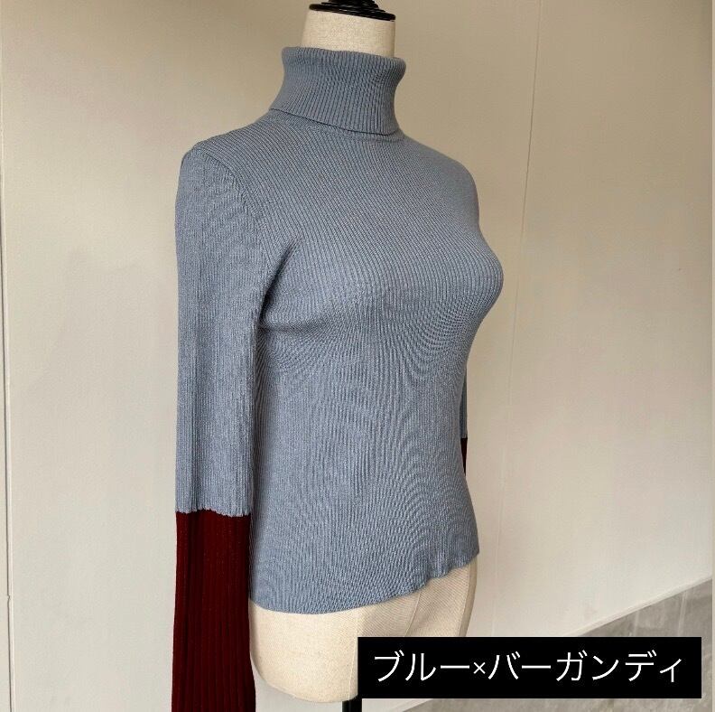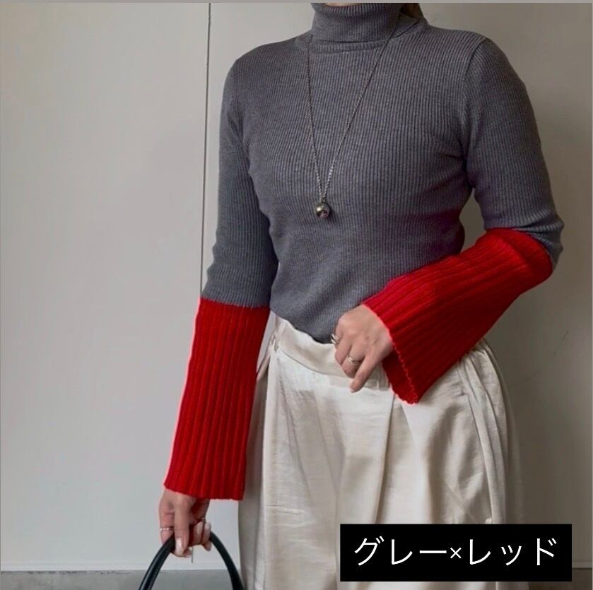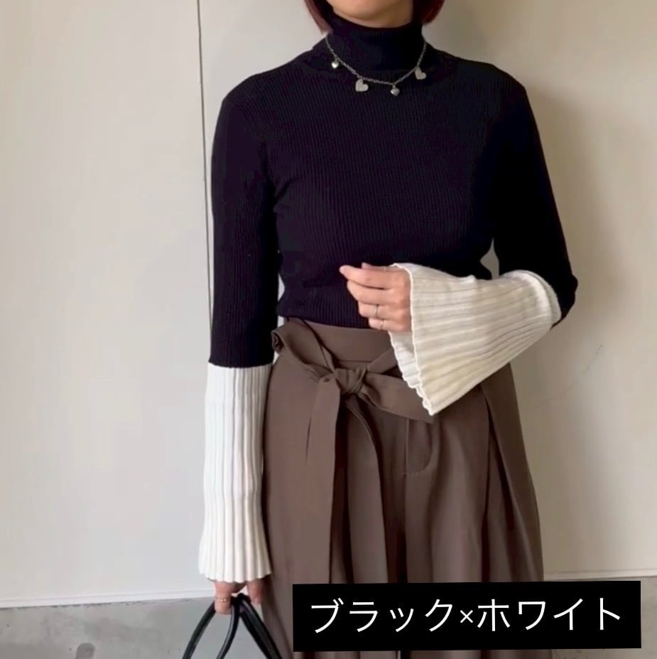 主役級の存在感、、バイカラーのフレアスリーブニットです。