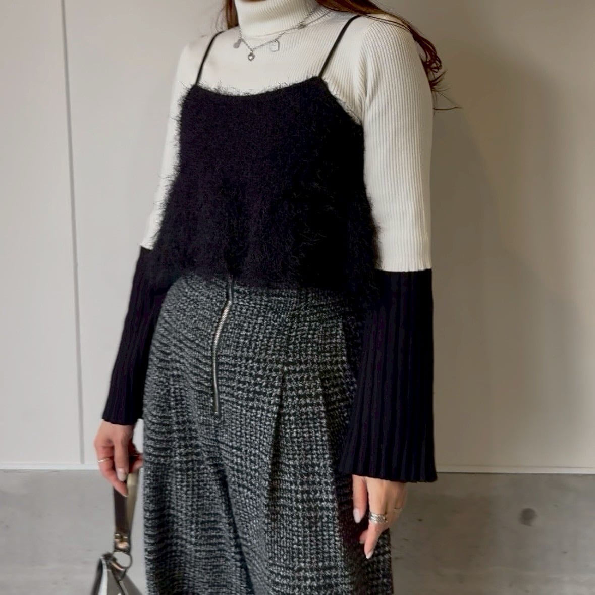 シンプルながらもトレンドを押さえたデザインは、レイヤードスタイルにも対応。