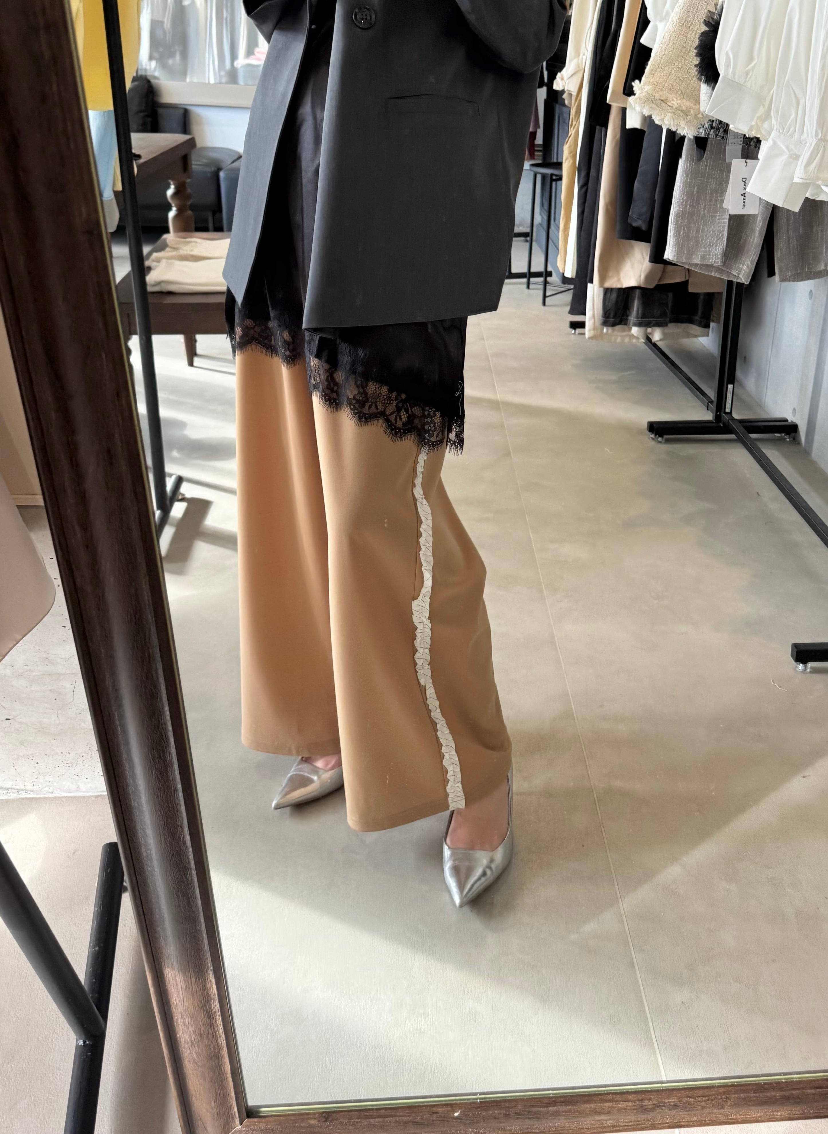 大人っぽく繊細なレースを使用したIラインデザインで身体のラインを拾わないデザイン。