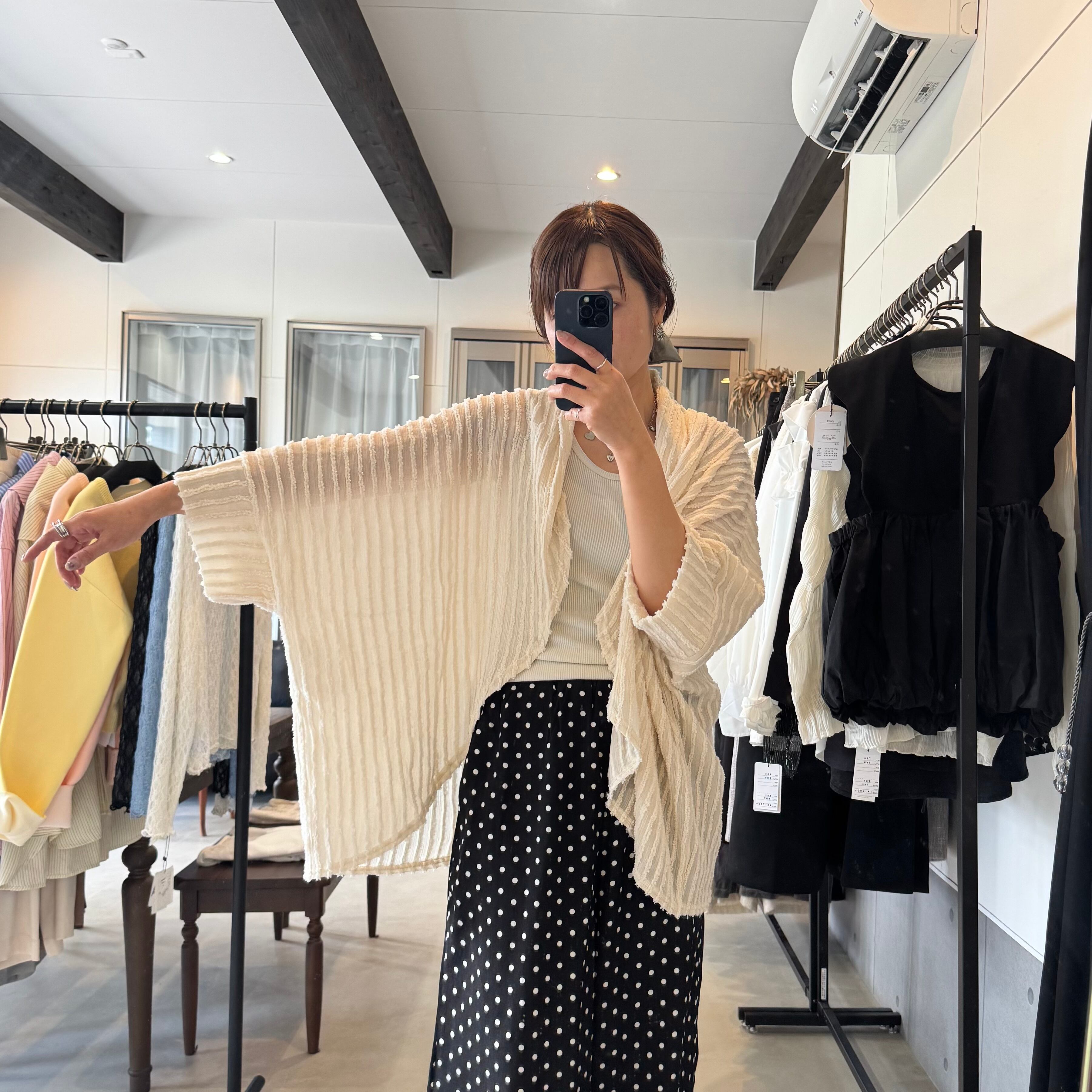 楊柳風の凹凸が美しいリネン混素材を使用した、軽やかなトップス感覚で纏えるドルマンカーディガンです。